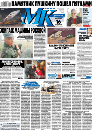 Московский комсомолец - популярная российская газета. Выходит во всех крупных городах России. Ежедневно обновляемые статьи, обзоры, комментарии. Собственная лента новостей. Выходит с 11 декабря 1919 г. Распространяется по всей России, в ближнем зарубежье, в Европе и Америке.